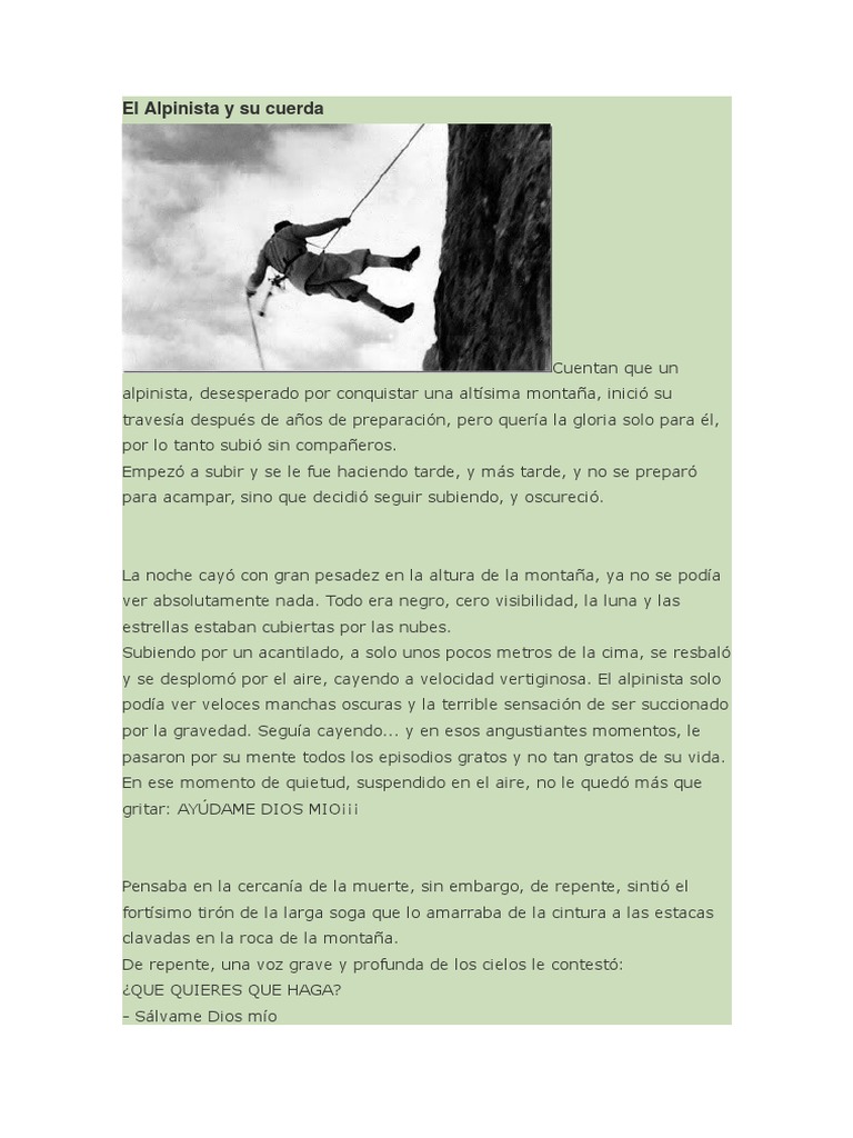 Historia del alpinista que no confio en dios. Pues aunque ésas llegasen a olvidar yo no te olvido. Una historia sobre la confianza en Dios. No andes en tinieblas la luz de Cristo puede alumbrar tu camino confía en.